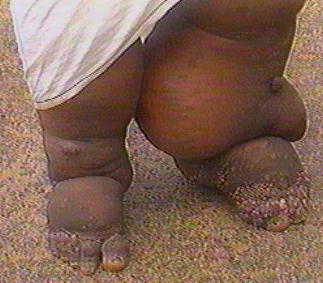 急性期为反复发作的淋巴管炎、淋巴结炎和发热;慢性期为淋巴水肿和象皮肿。