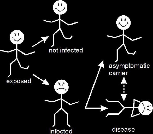 由于传播方式效率较低,因此多采用慢性感染方式,并非在所有个体中都发病,许多个体可以毫无症状。