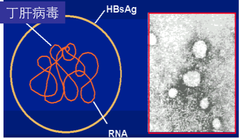 丁肝病毒----- 伴随乙肝病毒感染,加重乙肝病毒感染的病情; 盗用乙肝病毒的外壳蛋白。