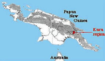 Kuru病:人海绵状脑病;发生于太平洋岛国巴布亚新几内亚的Kuru地区;当地有食用死人的陋习,陋习被制止后,疾病也随之终止。