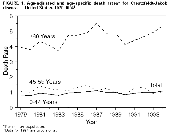 美国不同年龄人群CJD发病率