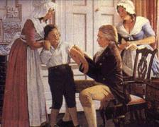 1796年5月14日,詹纳医生用从挤奶工 Sarah Nemes 手上取到的牛痘感染物为一个8岁小孩James Phipps 接种疫苗。