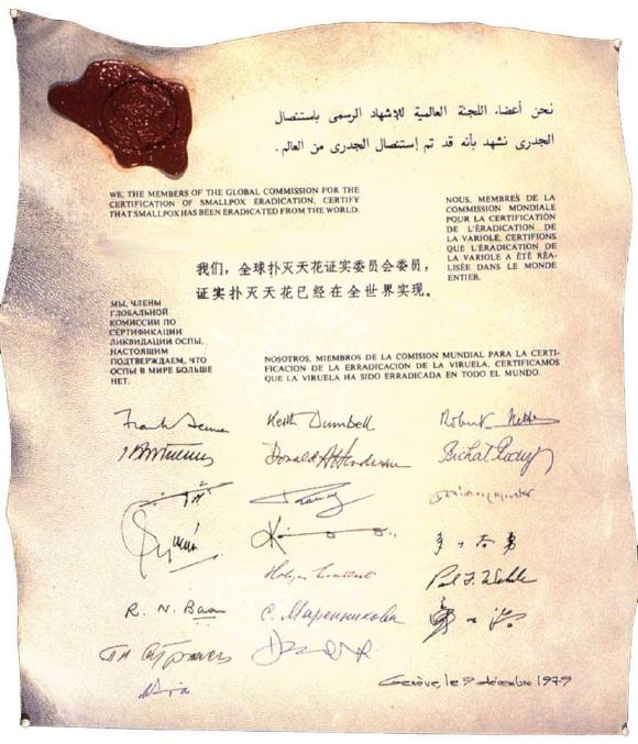 从詹纳医生发明牛痘开始,最终人类在1979年消灭了天花