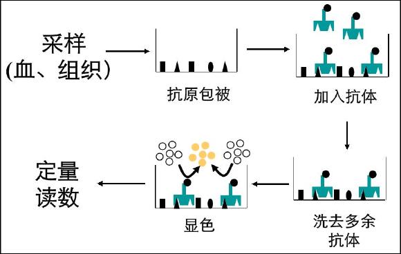 利用抗原-抗体反应的特异性来诊断特定的病原感染。对于显微镜下难以看见的病毒等微生物的感染尤其有用,主要针对蛋白质进行检测。