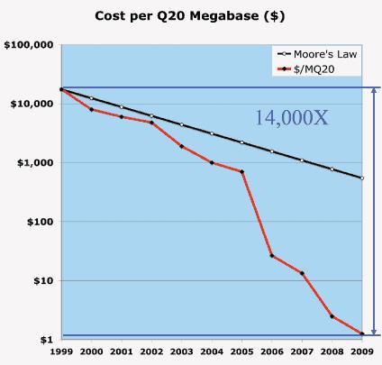 DNA测序的成本降低速度之快使“摩尔定律”相形见绌