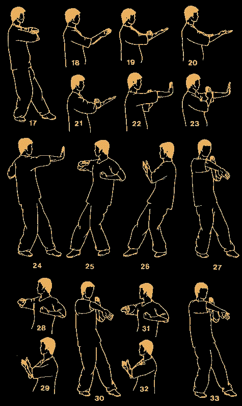 依循上式,左掌依中线向前推出,