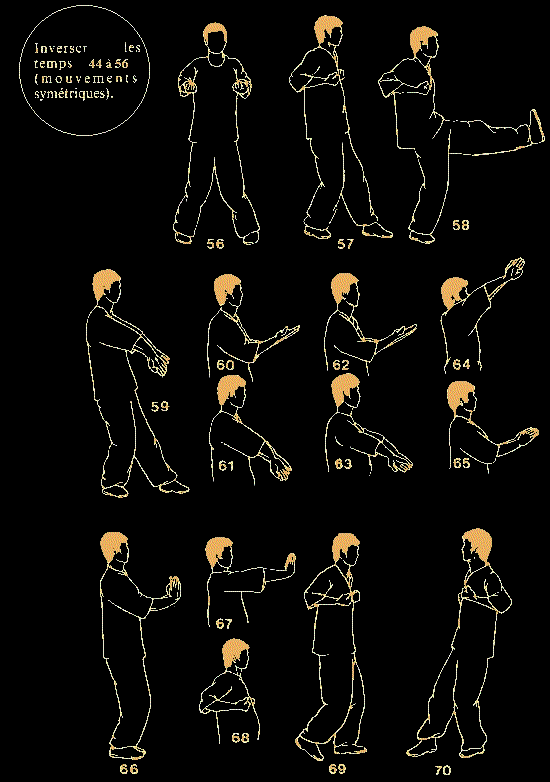 依循上式,双掌向前标出直插喉部,掌心向地。