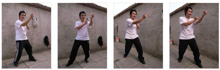 动作要领:由右正身桩手开始,这时左手轻握拳,肘底发力,沿中线打出当经过右手手腕时,右手肘部轻轻略向下沉,以便左拳顺利击出,最后至左手完全打进,拳臂打直为限,当左拳打进的同时,右拳沿中线快速打出,要领同左拳一样,如此下去,左右拳连环不断的练习。