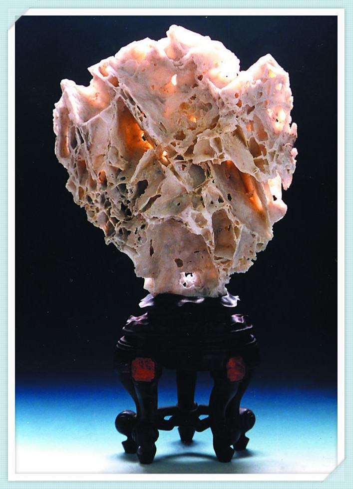 昆石有数十个品种,有比黄金贵十倍的荷叶皱,有形如蚁巢的蚂蚁峰,有薄如鸡骨的鸡骨峰,有结晶如雪的雪花峰,有形如核桃的核桃峰,有形状如梅的杨梅峰,还有海蛰峰,水晶杨梅,鸟屎峰等等。它的历史比喜马拉雅山还要早,所以历代文人雅士竟相重金收藏,皇宫贵族,达官贵人亦竟相攀比收藏。