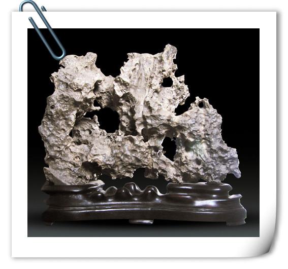 英石,又名英德石,因产于广东省英德县英德山一带而得名,与灵璧石同属沉积岩中的石灰岩,其历史悠久。宋杜绾《云林石谱》:“英州含光真阳县之间,石产溪水中”。其颜色有微青、灰黑、绿和白色几种,黄庭坚任象州太守时玩英石不惜“万金载归”,苏东坡曾“获双石一绿一白”。宋代王象之《舆地纪胜》引《真阳志》:“英之山石,擅名天下”,“其贫无为生者,则采山之奇石以为贷焉”。宋代英石开采量不大,但极受推崇,市价很高,时人喻良曾发出“久闻英石空流涎,意欲得之无力致”的感叹。宋赵希鹄《洞天清录集》将灵壁、英石、太湖等怪石列入“文房四玩”。