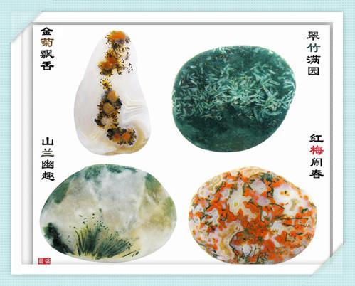 雨花石是花形的石,是石质的花。凝天地之灵气,聚日月之精华,孕万物之风采,其主要特征是“ 六美”:质美、形美、弦美、色美、呈象美、意境美。在赏玩、收藏雨花石时,可根据其呈像分为人 物、动物、风景、花木、文字、抽象石等、按照“ 六美”程度可分为绝品石、珍品石、精品石、佳品石等品级,观之令人旷神怡,赏之可意安体泰。古往今来,备受人们喜爱。历代名人及文人骚客爱石甚多,周恩来总理曾经收藏雨花石,前国务院副总理吴学谦91年10月来仪征市月塘乡时,观赏了雨花石,京剧大师梅兰芳先生也曾赏玩雨花石,汉城奥运会上中国体育运动员将雨花石作为中国的象征永久存在汉城。如今中国及国外赏玩、收藏雨花石越来越多,它已成为馈赠来宾、亲友的高档礼品,雨花石风光无限。
