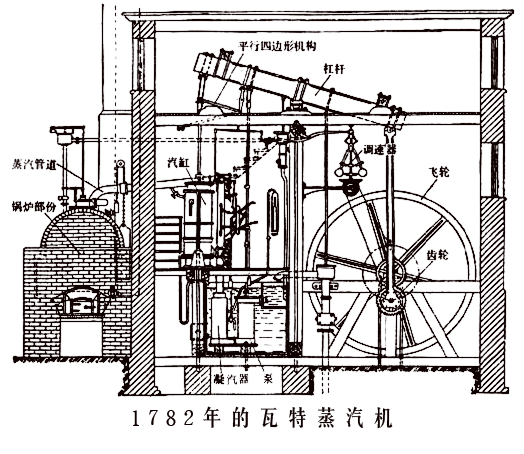在瓦特改良蒸汽机之前,整个生产所需动力依靠人力和畜力。伴随蒸汽机的发明和改进,工厂不再依河或溪流而建,很多以前依赖人力与手工完成的工作自蒸汽机发明后被机械化生产取代。工业革命是一般政治革命不可比拟的巨大变革,其影响涉及人类社会生活的各个方面,使人类社会发生了巨大的变革,对人类的现代化进程推动起到不可替代的作用,把人类推向了崭新的蒸汽机时代。