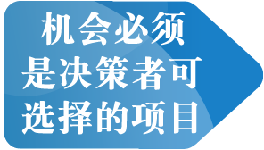 机会成本所指的机会必须是决策者可选择的项目,若不是决策者可选择的项目便不属于决策者的机会。例如某农民只会养猪和养鸡,那么养牛就不会是某农民的机会。