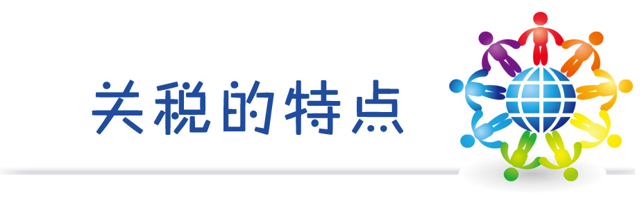 关税的第一个特点是间接税。就是进出口商人先代理消费者将关税交给国家,并将关税转嫁到商品价格中,最后承担的仍然是消费者。现在我国的税收管理主要有两种,一种是直接税,主要是指企业所得税和个人所得税;另一种是间接税,是除直接税之外的税收。我国实行的价内税即间接税,也就是说我们的每一次消费行为都在为国家纳税。