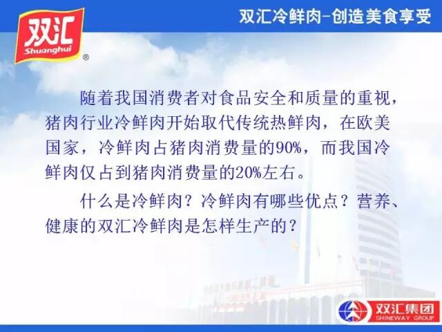 冰鲜猪肉是指严格执行检疫制度屠宰后的畜胴体,在-20℃的条件下,迅速进行冷却处理,使胴体温度24h内由38℃左右降为0~4℃。其他条件与冷却肉相同,只是前期降温速度快,品质和质量安全更有保证。