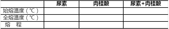 用毛细管法分别测定尿素、肉桂酸及尿素和肉桂酸(1∶1)混合物的熔点,注意比较三者的熔点及熔距变化。