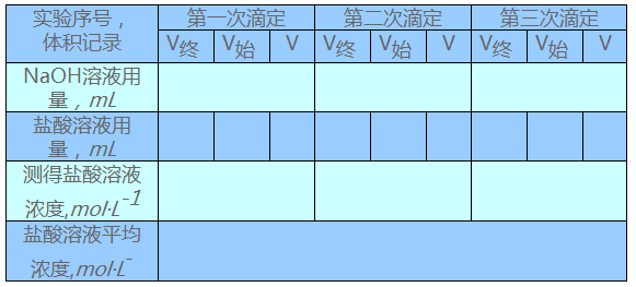 (3)盐酸溶液浓度的测定(实验表9-2)