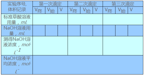 (2)NaOH溶液浓度的标定(实验表9-1):