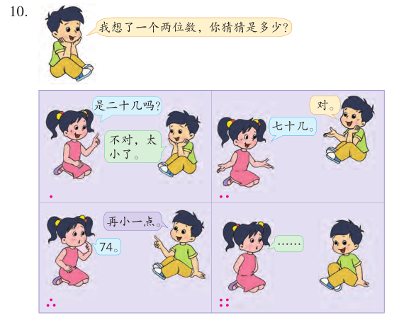 对于100以内数的认识,设计有趣的猜数活动,引导学生采用“逐步逼近”的区间套思想解决问题。