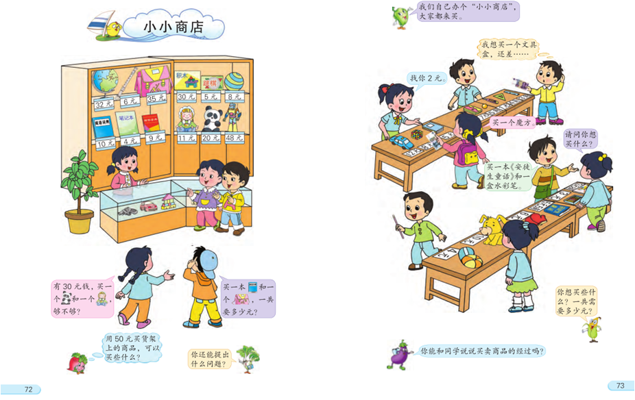 适当增加有利于提高学生基本学习能力的练习,例如,为了帮助学生化解认识“元、角、分”的学习难点,突出“元、角、分”在日常生活中的广泛应用,增设了一课时的练习。