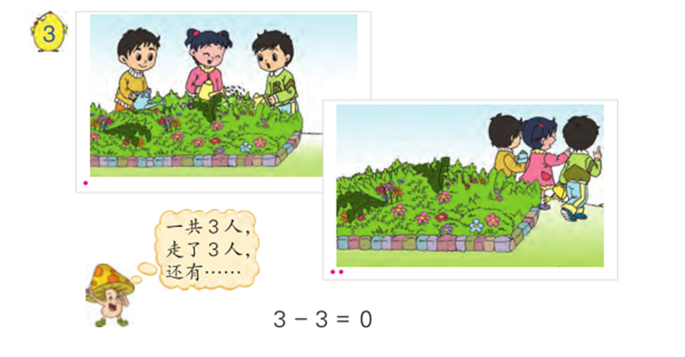 再通过例3启发学生思考“一共有3人,走了3人,还有……”。