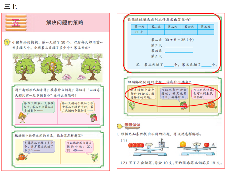有计划地安排解决问题策略的教学是这套教材的重要特色。