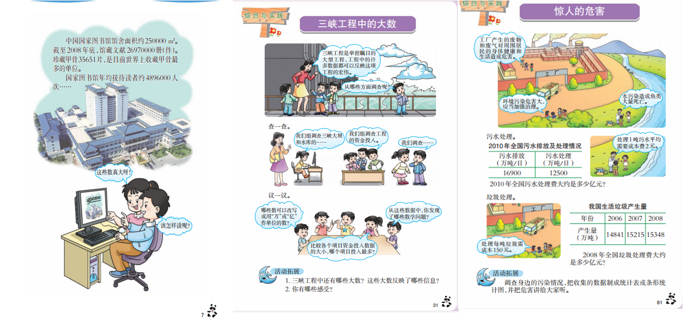 本套教材注重对数学问题情境的创设,在情境的设置、题材的选取、场景的设计等方面形成本套教材的一个主要特点。
