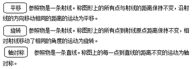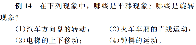 ○结合实例,感受平移、旋转、轴对称现象(参见例14)。