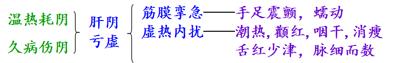 阴虚动风 | 手足蠕动 | 潮热,颧红 咽干,消瘦 | 虚热证候 |