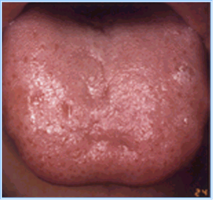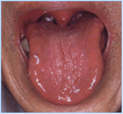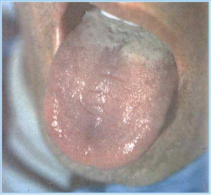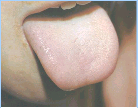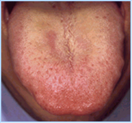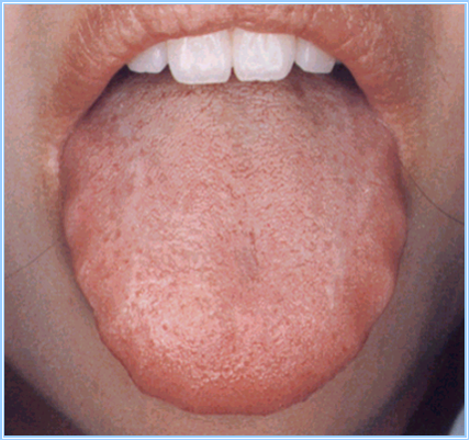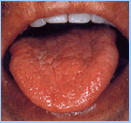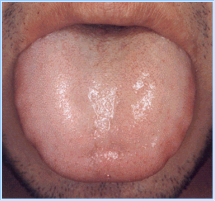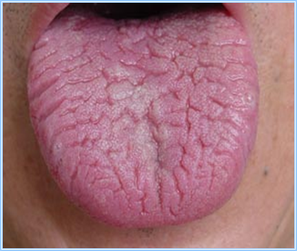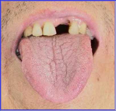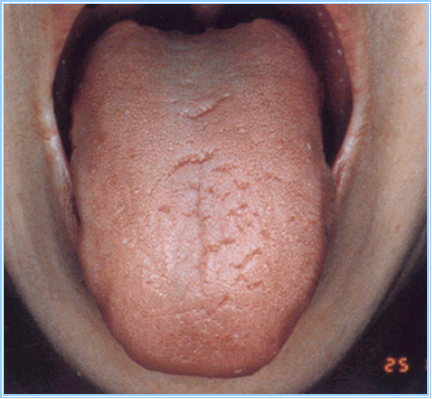 在健康人中大约有0.5%的人在舌面上有纵、横间深沟,裂纹中有苔覆盖,且无不适症状。