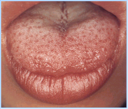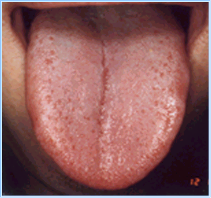 刺——是指蕈状乳头肿胀或高突如刺,摸之棘手的红色或黄黑色点刺,称为芒刺舌。
