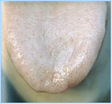 1.舌象特征:舌色比正常舌色浅淡,白色偏多红色偏少,称为淡舌。舌色白,几无血则称为枯白舌。