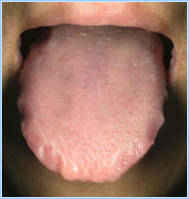 | 胖大舌 | 舌体比正常的人大而厚,伸舌满口 |