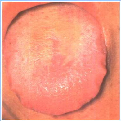 舌色红绛而少苔或无苔 ——热病后期胃、肾阴液受损;久病阴虚火旺 | 舌色红绛而少苔或无苔,有裂纹 ——热病后期胃、肾阴液受损;久病阴虚火旺。 |