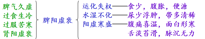 1.含义:脾阳虚衰,失于温运,阴寒内生所表现的虚寒证候。