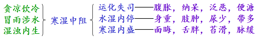 3.要点:腹胀,便溏,身重,肢肿 + 寒湿内盛(晦,重,腻,缓)