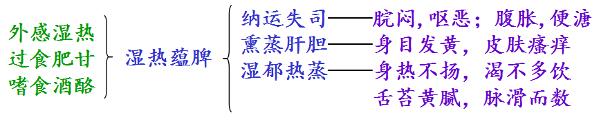 3.要点:纳运障碍+湿热证(身热不扬,渴不多饮,舌苔黄腻,脉滑而数)