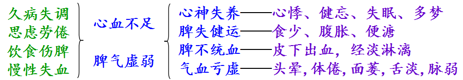 心血虚→脾失濡养,脾气不足→脾气虚;