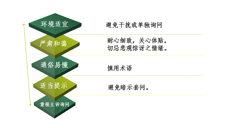 耐心与患者交谈,细心听取患者的陈述。对病人的回答不确切和不满意时要耐心启发病人思考回忆。如“不用急,再想一想,能不能再确切些?如发病时间,病情变化等”。更不要因急于了解情况进行套问和逼问,以免病人为满足医生而随声附和或躲避回答,如“你腹痛时伴有恶心呕吐吗?……”,“你上胸痛时向左肩放射吗?”。