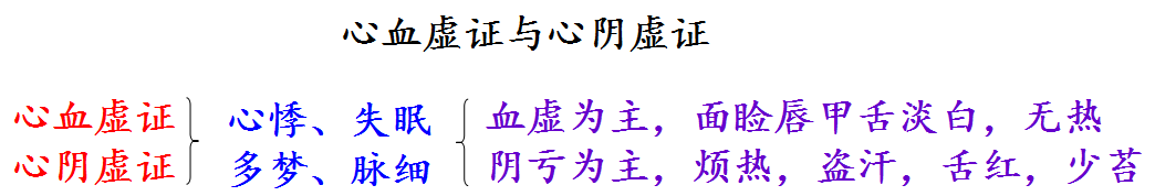 一般认为,心阴虚>心血虚;有无虚热是鉴别要点。