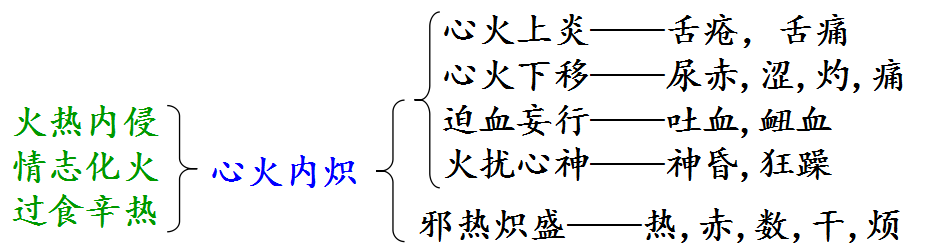 4. 治疗:清心泻火:泻心汤《金匮要略》;导赤散《小儿药证直诀》;犀角地黄汤《千金方》;清营汤《温病条辨》