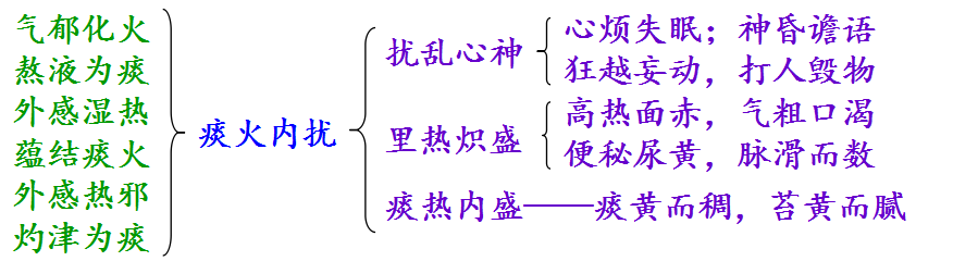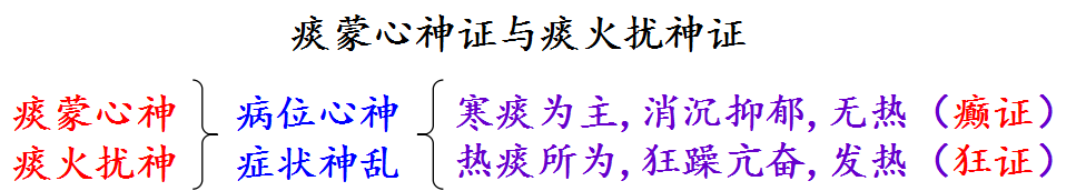 3. 要点:神志异常(轻/重/狂)+痰火内盛(痰黄稠,苔黄腻,脉滑数)