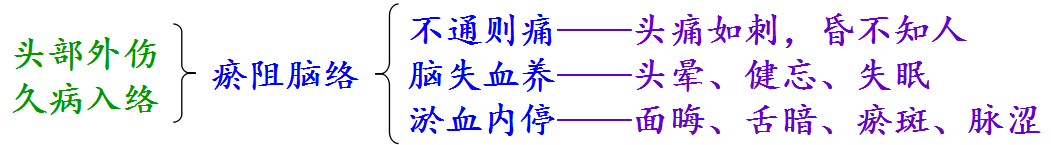 1. 含义:由于瘀血犯头,阻滞脑络,以头痛、头晕为主症的证候。