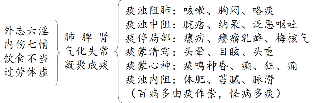 痰:水液内停而凝聚所形成的病理产物(因病致痰);