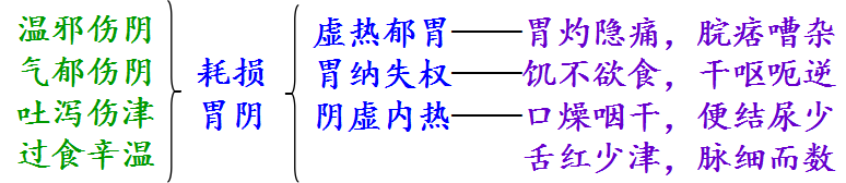 1.含义:胃阴不足,胃失濡润、和降所表现的虚热证候。