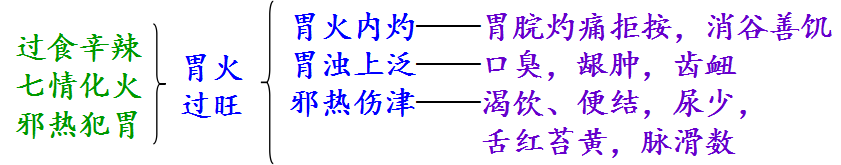 3.要点:胃脘灼痛,消谷善饥,口臭龈肿 + 实热证