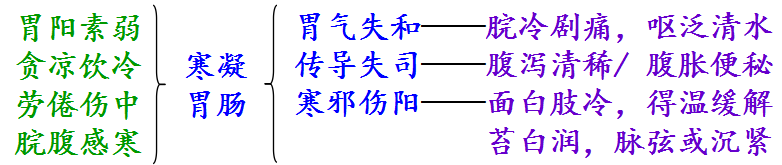 1.含义:寒邪侵犯胃肠,阻滞气机,以脘腹冷痛为主症的实寒证候。