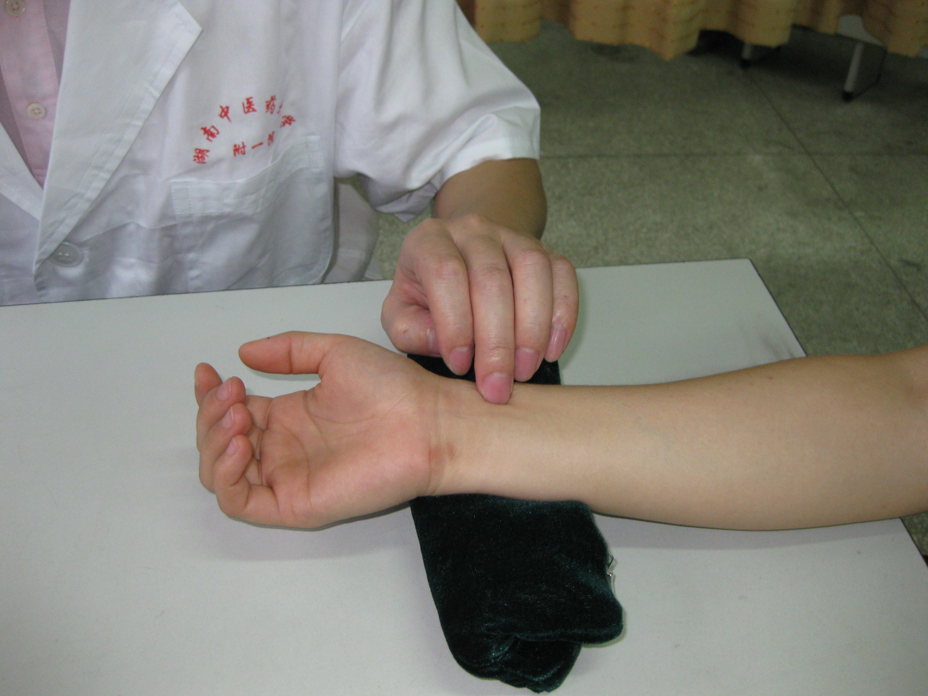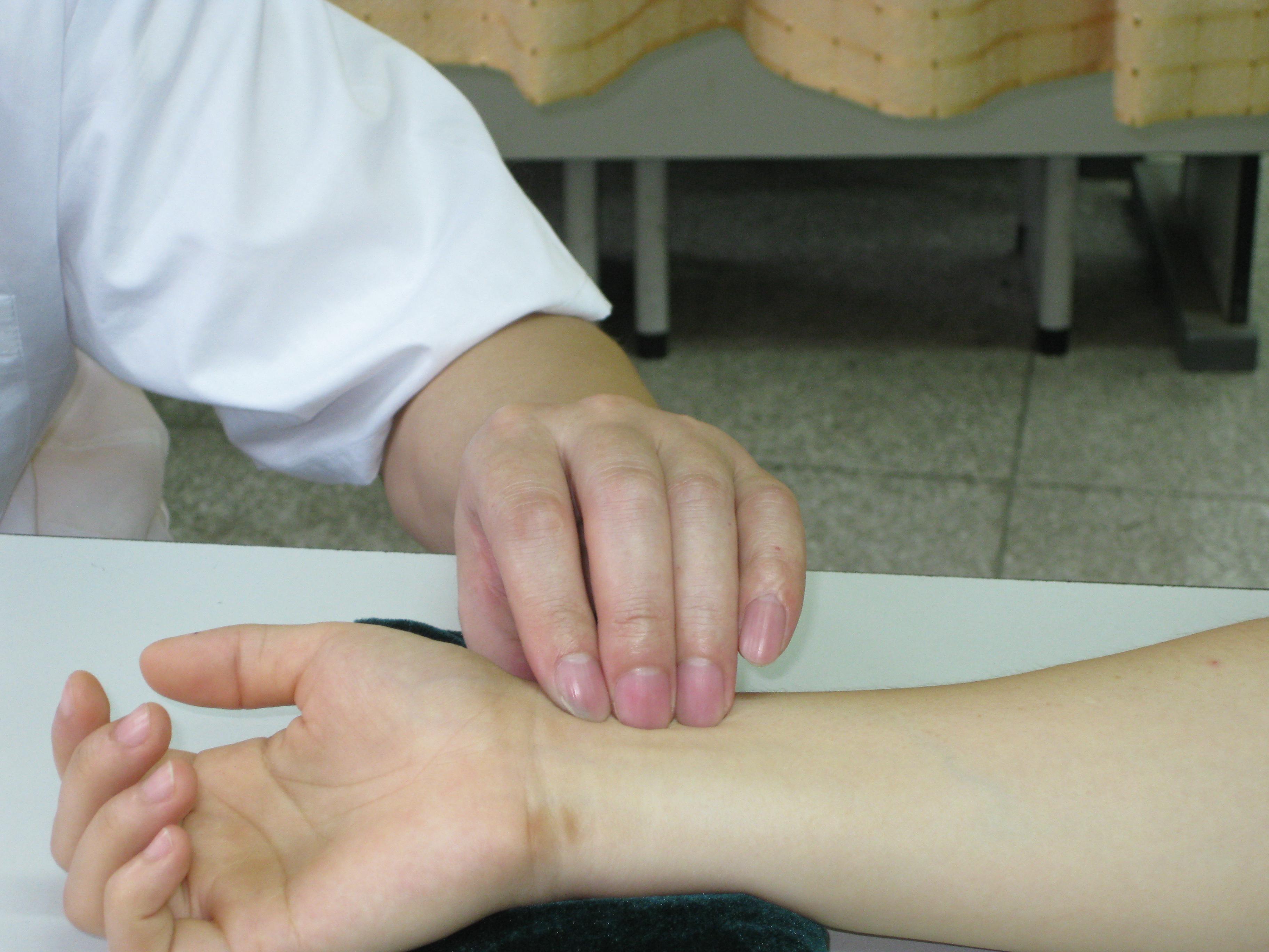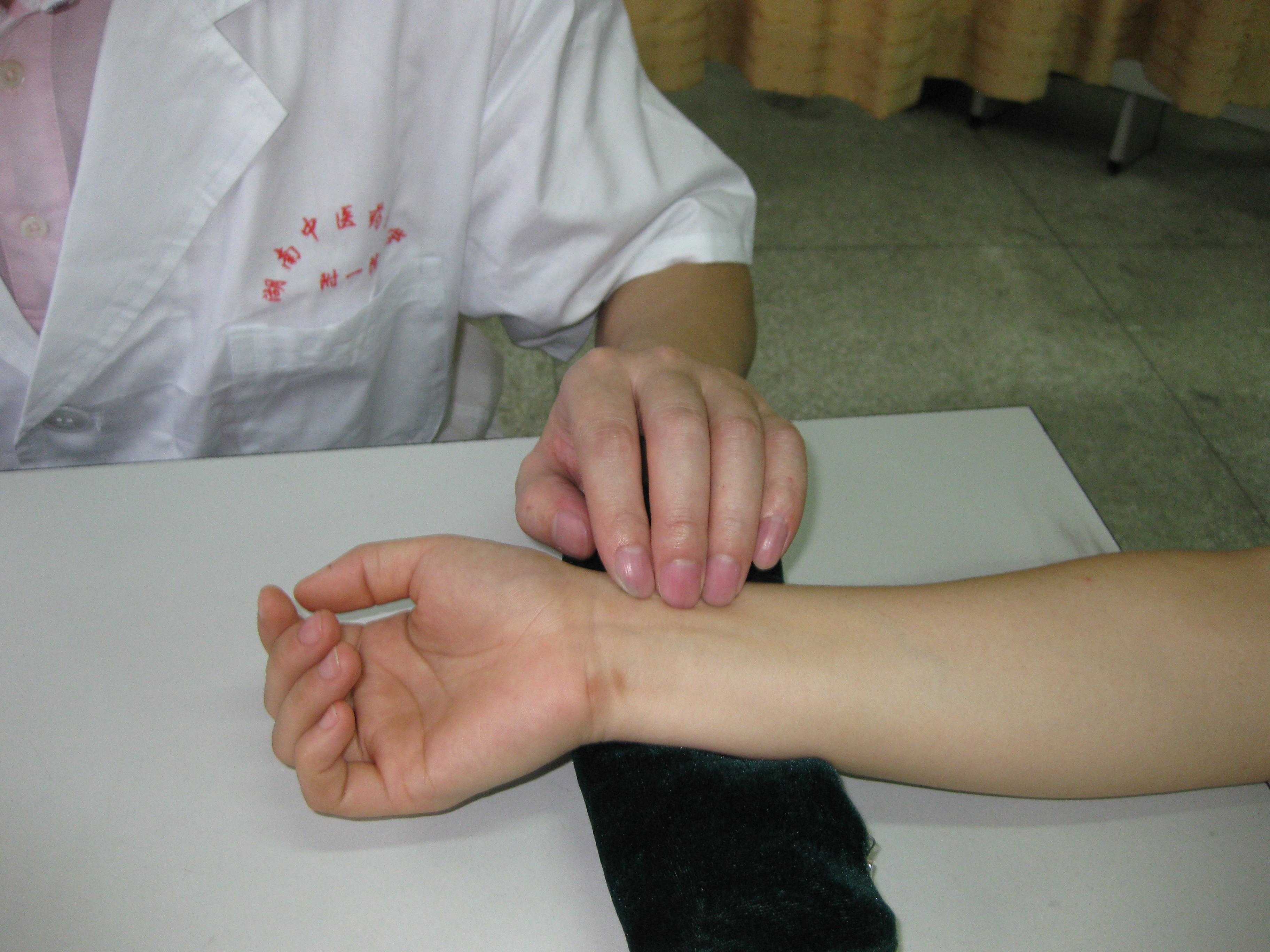 (1)医患侧坐,左右交诊,食中无名,三指齐平,略呈弓形。