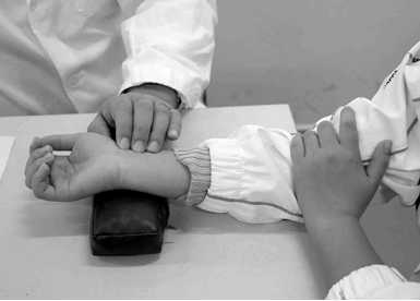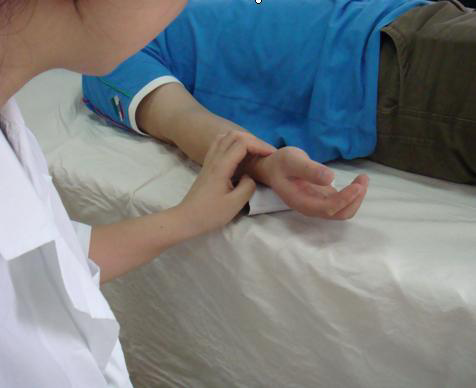(3)脉诊体位:正坐仰卧,医患侧坐,脉与心平,左右交诊
