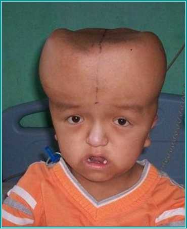 头大面小,智力低下——肾精亏虚,水停于脑。